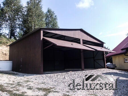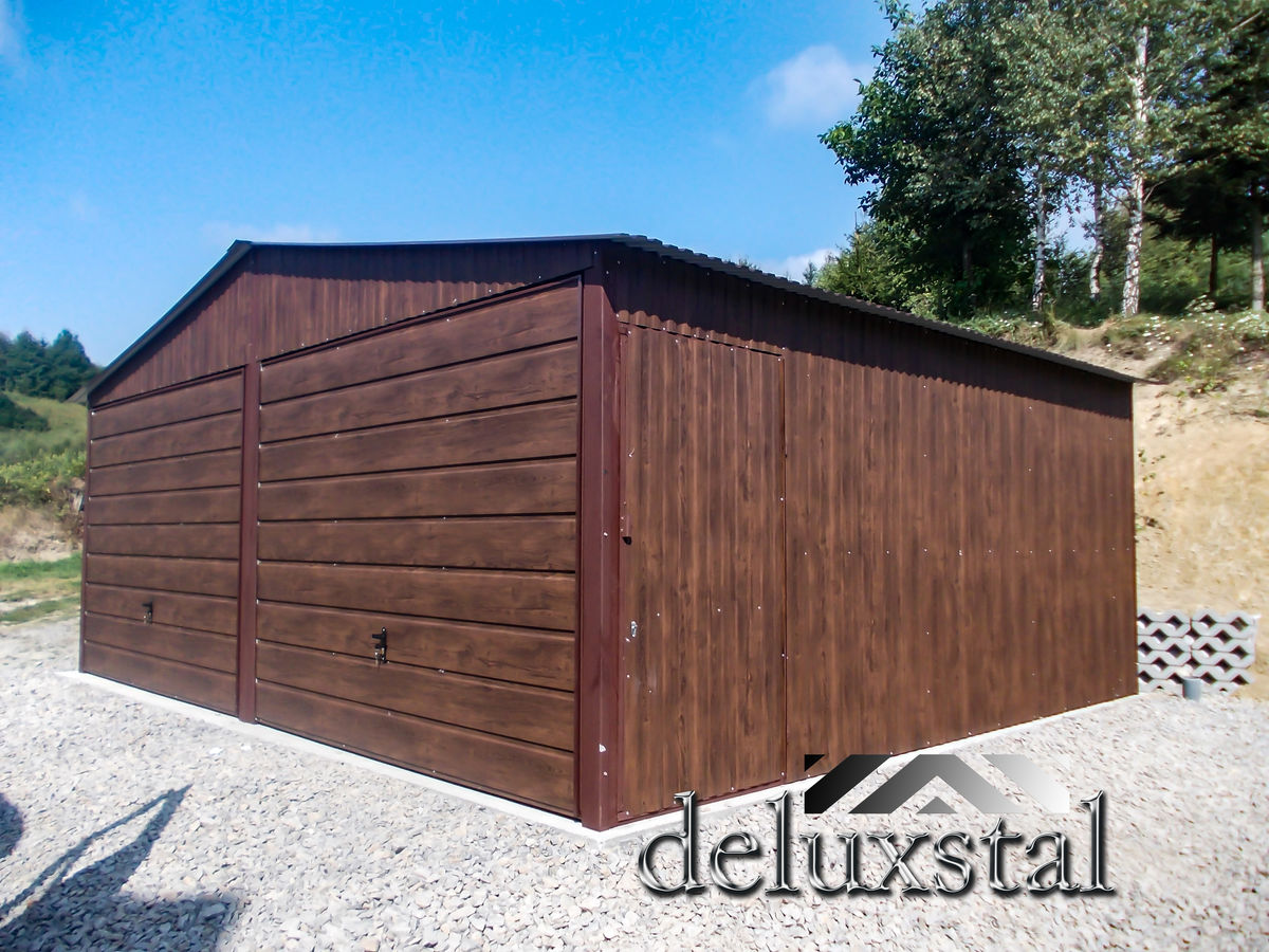Garaz 9x6 kolorze grafitowym RAL 7016 dwie bramy uchylne dach dwuspadowy